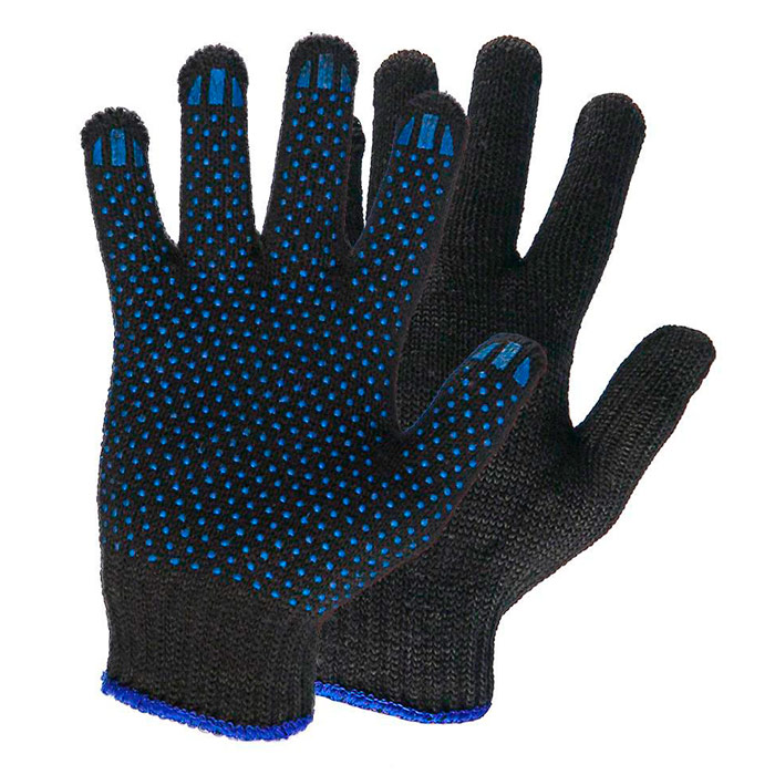 Перчатки Х/Б (5 нитей) черные с ПВХ "Точка" в Ульяновске купить