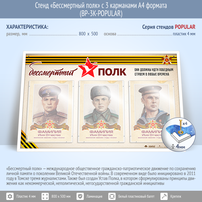 Стенд «Бессмертный полк» с 3 карманами А4 формата (BP-3K-POPULAR)