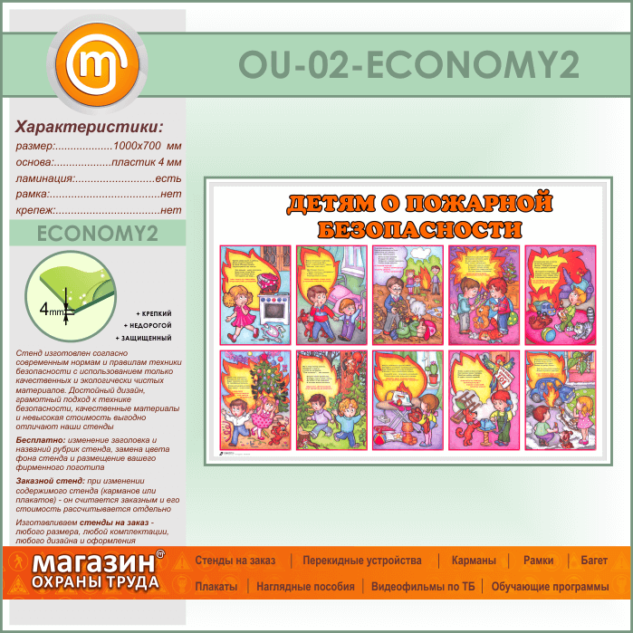 Стенд «Детям о пожарной безопасности» (OU-02-ECONOMY2) в Ульяновске купить