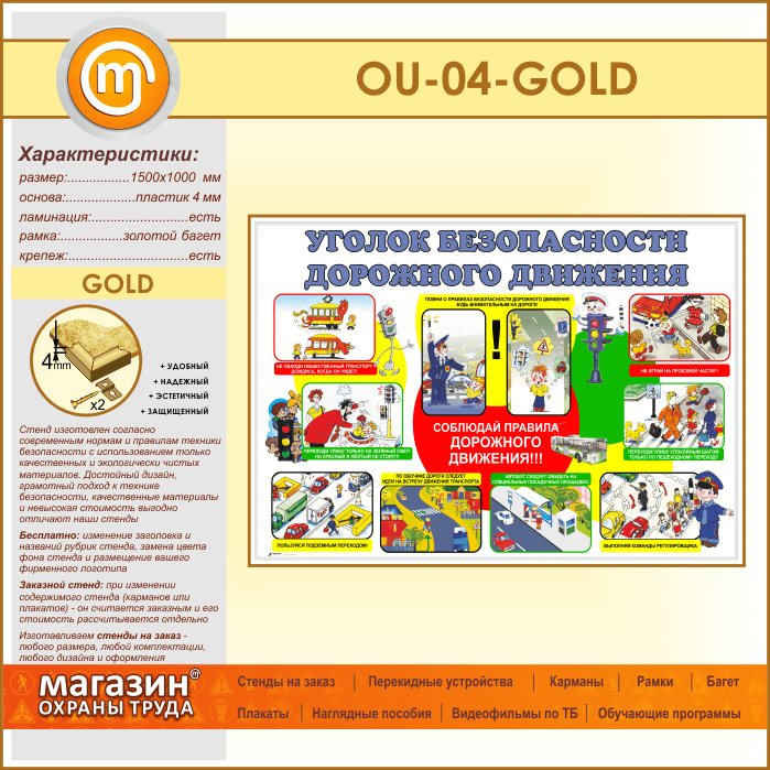 Стенд «Уголок безопасности дорожного движения» (OU-04-GOLD) в Ульяновске купить