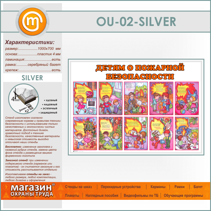 Стенд «Детям о пожарной безопасности» (OU-02-SILVER) в Ульяновске купить