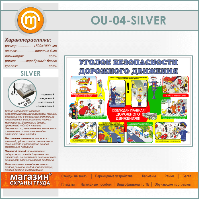 Стенд «Уголок безопасности дорожного движения» (OU-04-SILVER) в Ульяновске купить