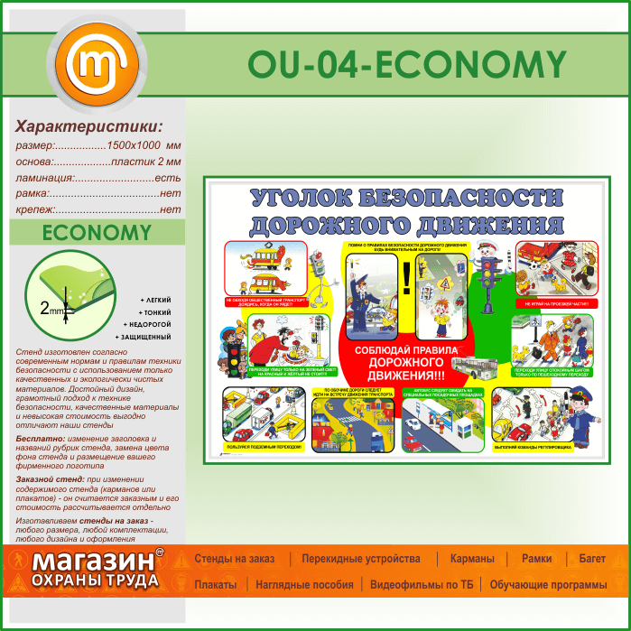 Стенд «Уголок безопасности дорожного движения» (OU-04-ECONOMY) в Ульяновске купить