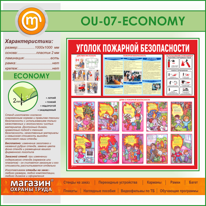Стенд «Уголок пожарной безопасности» (OU-07-ECONOMY) в Ульяновске купить