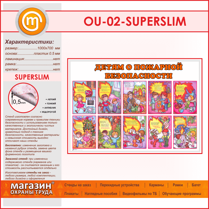 Стенд «Детям о пожарной безопасности» (OU-02-SUPERSLIM) в Ульяновске купить