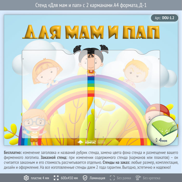 Стенд «Для мам и пап» с 2 карманами А4 формата (DOU-1.2) в Ульяновске купить