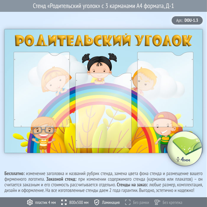 Стенд «Родительский уголок» с 3 карманами А4 формата (DOU-1.3) в Ульяновске купить