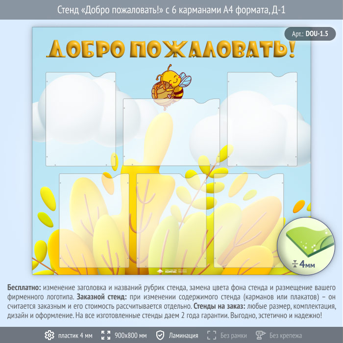 Стенд «Добро пожаловать!» с 6 карманами А4 формата (DOU-1.5) в Ульяновске купить