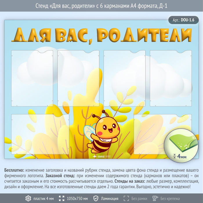 Стенд «Для вас, родители» с 6 карманами А4 формата (DOU-1.6) в Ульяновске купить