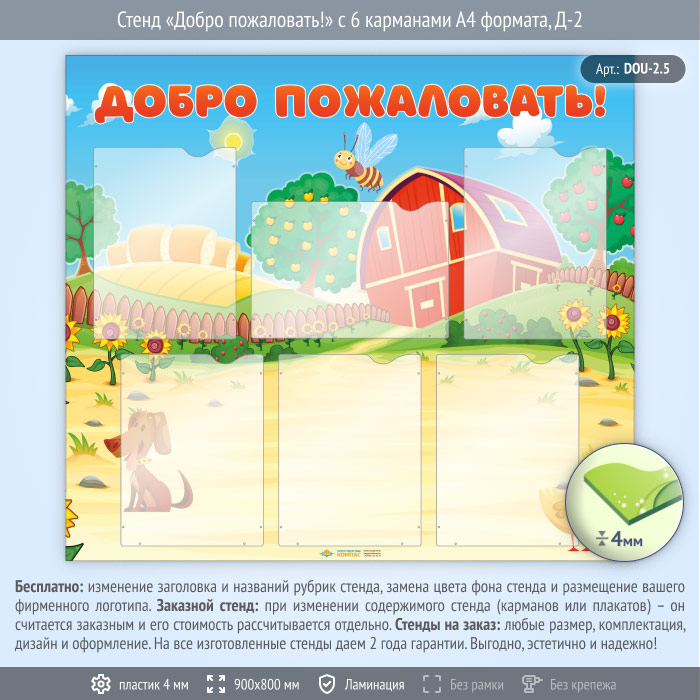 Стенд «Добро пожаловать!» с 6 карманами А4 формата (DOU-2.5) в Ульяновске купить