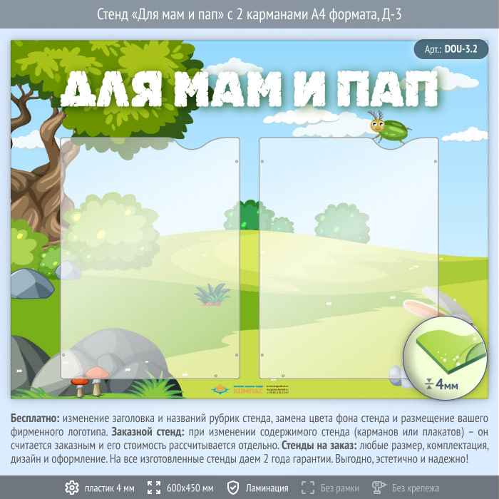 Стенд «Для мам и пап» с 2 карманами А4 формата (DOU-3.2) в Ульяновске купить