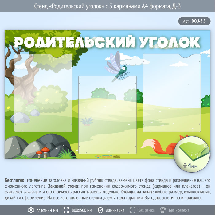 Стенд «Родительский уголок» с 3 карманами А4 формата (DOU-3.3) в Ульяновске купить