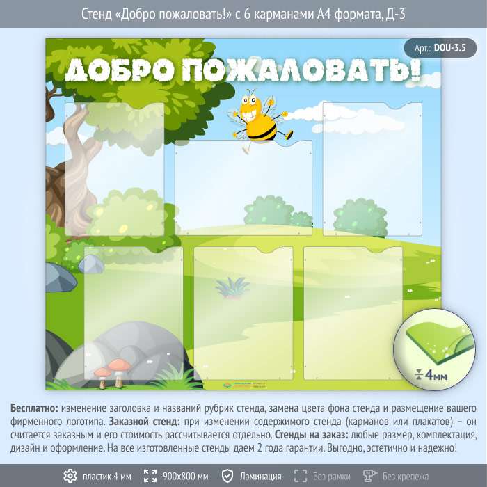 Стенд «Добро пожаловать!» с 6 карманами А4 формата (DOU-3.5) в Ульяновске купить