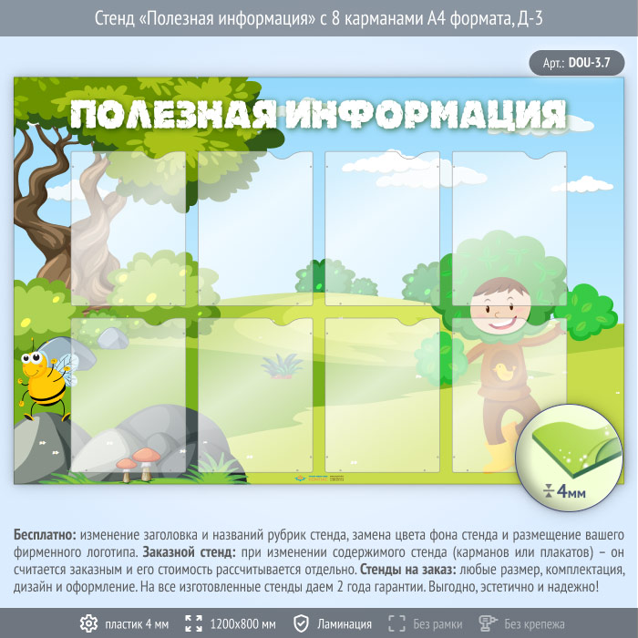 Стенд «Полезная информация» с 8 карманами А4 формата (DOU-3.7) в Ульяновске купить