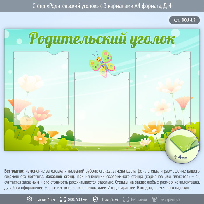 Стенд «Родительский уголок» с 3 карманами А4 формата (DOU-4.3) в Ульяновске купить