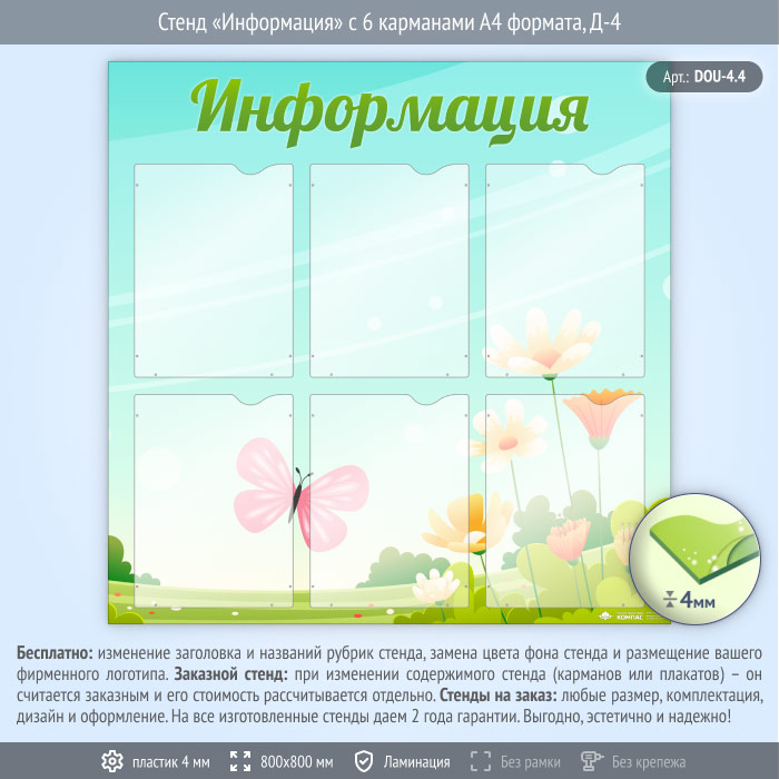 Стенд «Информация» с 6 карманами А4 формата (DOU-4.4) в Ульяновске купить