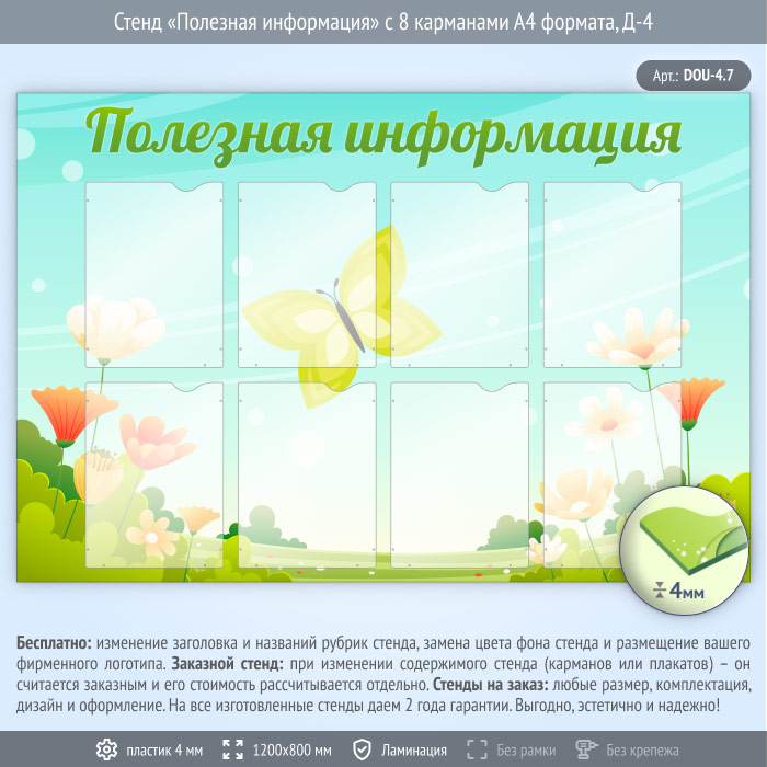 Стенд «Полезная информация» с 8 карманами А4 формата (DOU-4.7) в Ульяновске купить