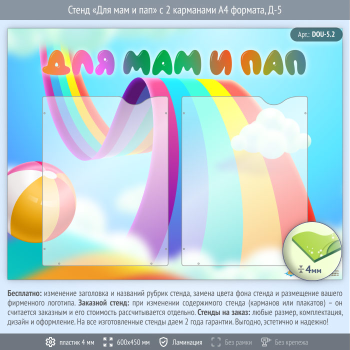 Стенд «Для мам и пап» с 2 карманами А4 формата (DOU-5.2) в Ульяновске купить