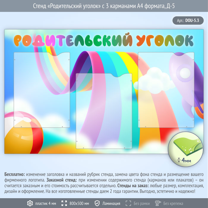 Стенд «Родительский уголок» с 3 карманами А4 формата (DOU-5.3) в Ульяновске купить