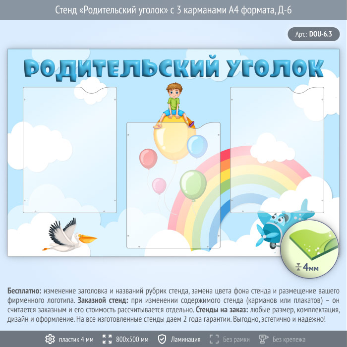 Стенд «Родительский уголок» с 3 карманами А4 формата (DOU-6.3) в Ульяновске купить
