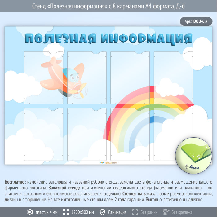 Стенд «Полезная информация» с 8 карманами А4 формата (DOU-6.7) в Ульяновске купить