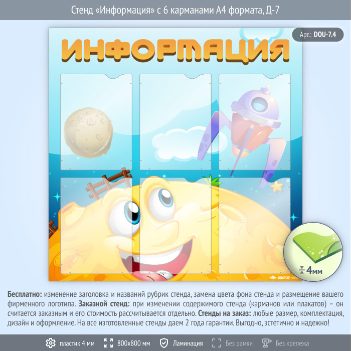 Стенд «Информация» с 6 карманами А4 формата (DOU-7.4) в Ульяновске купить