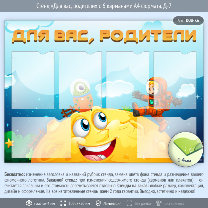 Стенд «Для вас, родители» с 6 карманами А4 формата (DOU-7.6) в Ульяновске купить