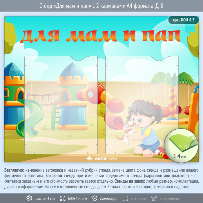 Стенд «Для мам и пап» с 2 карманами А4 формата (DOU-8.2) в Ульяновске купить