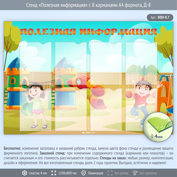 Стенд «Полезная информация» с 8 карманами А4 формата (DOU-8.7) в Ульяновске купить