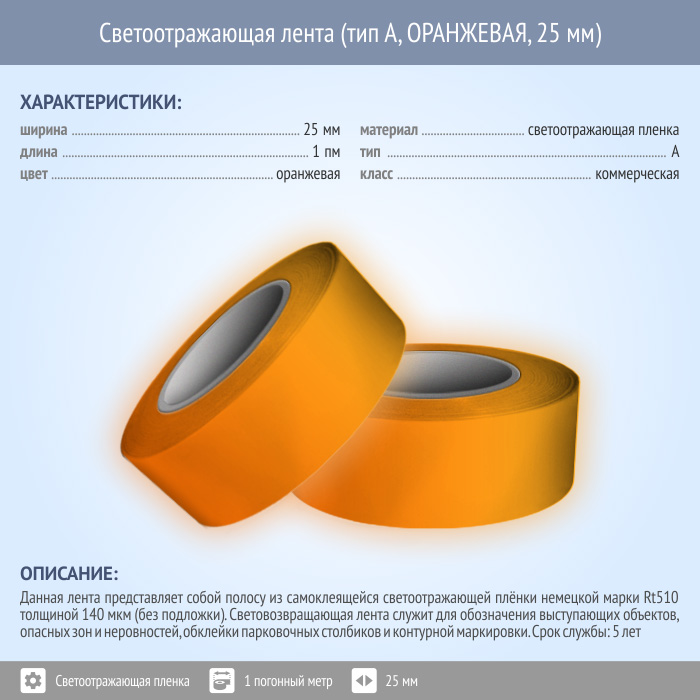 Светоотражающая однородная лента (тип А, ОРАНЖЕВАЯ, 25 мм х 1 п.м.) в Ульяновске купить