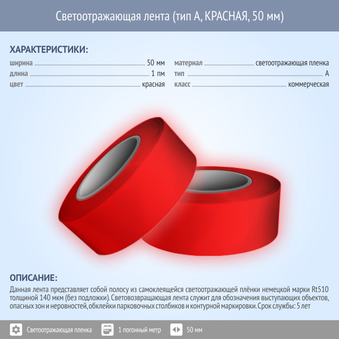 Светоотражающая однородная лента (тип А, КРАСНАЯ, 50 мм х 1 п.м.) в Ульяновске купить