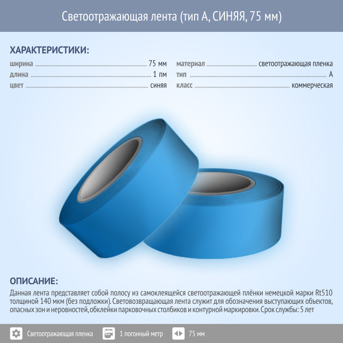 Светоотражающая однородная лента (тип А, СИНЯЯ, 75 мм х 1 п.м.) в Ульяновске купить