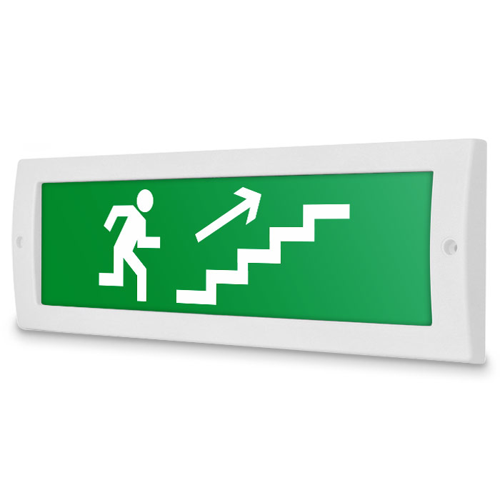 Световое табло «Направление к эвакуационному выходу по лестнице вверх (правосторонний)», Молния (12В) в Ульяновске купить