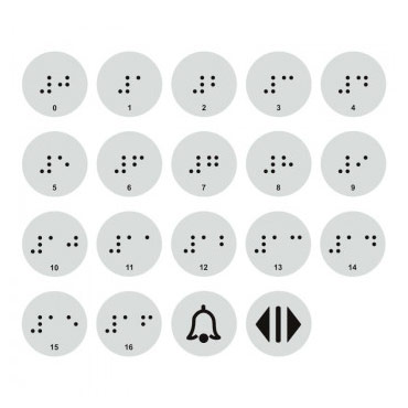 Тактильные наклейки для кнопок лифта с 0 по 16 этаж (набор) , ДС96 (пленка, 20х20 мм, серебристый) в Ульяновске купить