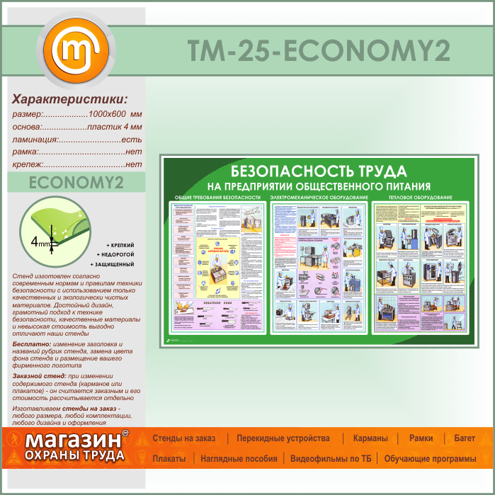 Стенд «Безопасность труда на предприятиях общественного питания» (TM-25-ECONOMY2) в Ульяновске купить