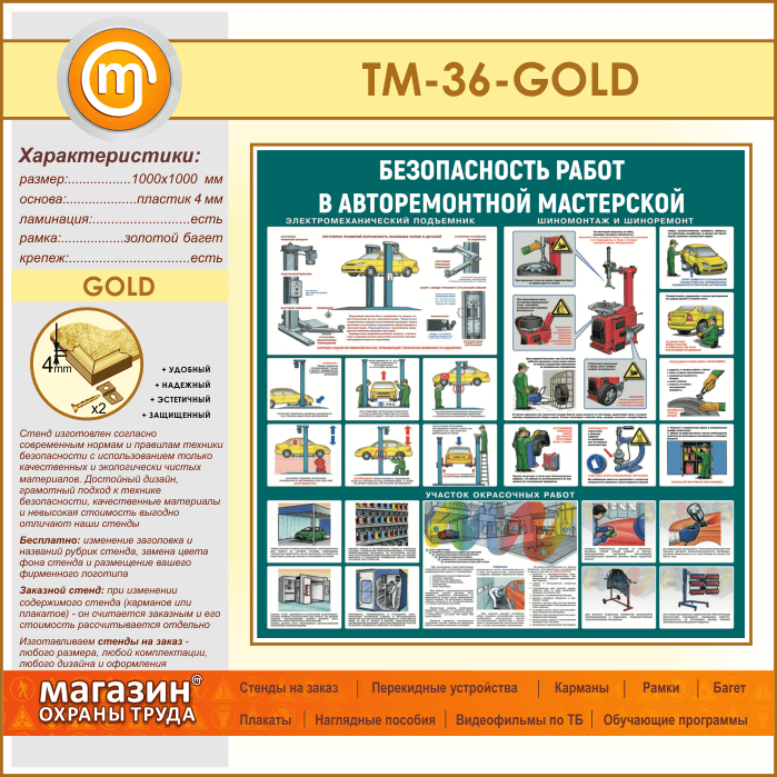 Стенд «Безопасность работ в авторемонтной мастерской» (TM-36-GOLD) в Ульяновске купить