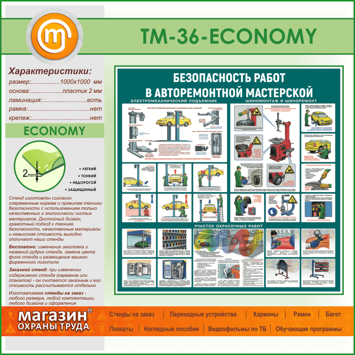 Стенд «Безопасность работ в авторемонтной мастерской» (TM-36-ECONOMY) в Ульяновске купить