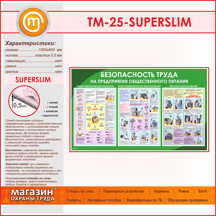Стенд «Безопасность труда на предприятиях общественного питания» (TM-25-SUPERSLIM) в Ульяновске купить