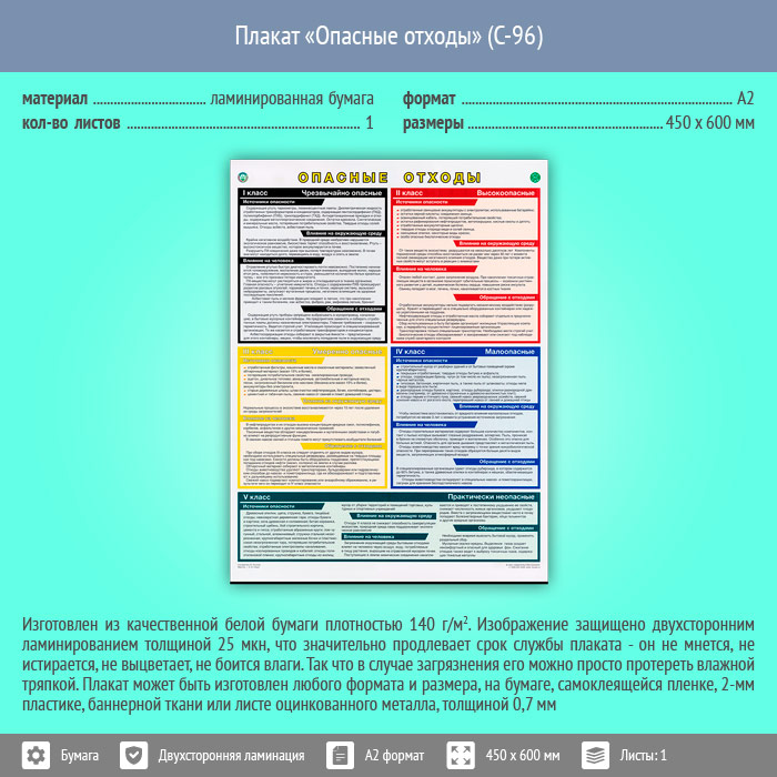 Плакат «Опасные отходы» (С-96, ламинированная бумага, А2, 1 лист) в Ульяновске купить