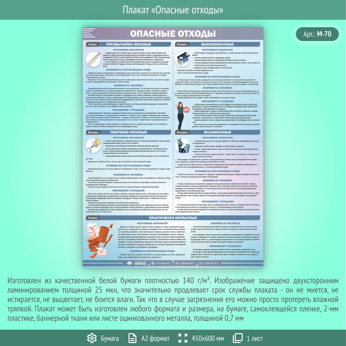 Плакат «Опасные отходы» (М-70, ламинированная бумага, А2, 1 лист) в Ульяновске купить