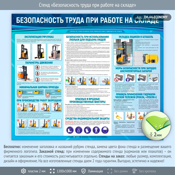 Стенд «Безопасность труда при работе на складе» (TM-44-ECONOMY) в Ульяновске купить
