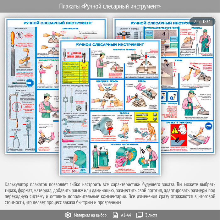 Плакаты «Ручной слесарный инструмент» (С-24, 3 листа) в Ульяновске купить