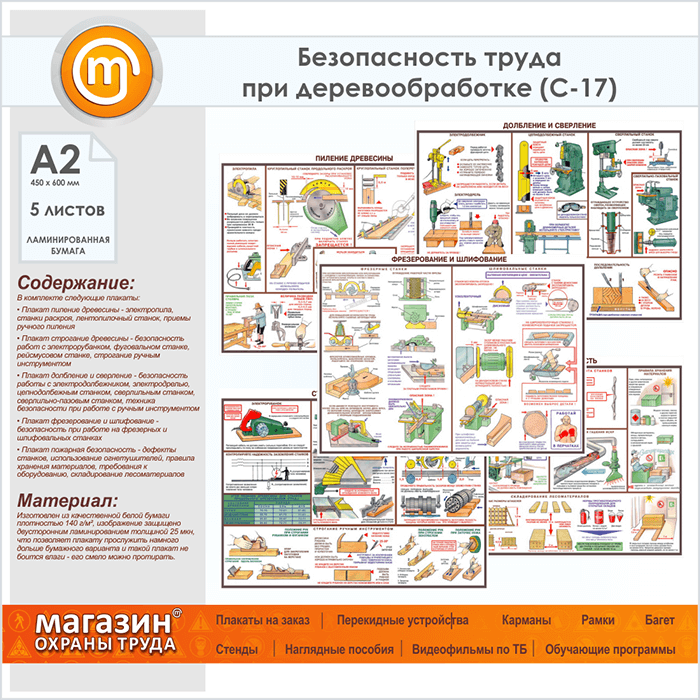 Плакаты «Безопасность труда при деревообработке» (С-17, ламинированная бумага, А2, 5 листов) в Ульяновске купить