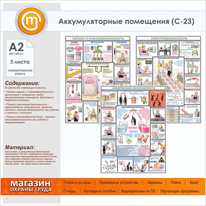 Плакаты «Аккумуляторные помещения» (С-23, ламинированная бумага, А2, 3 листа) в Ульяновске купить