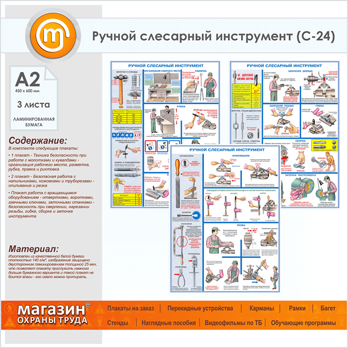 Плакаты «Ручной слесарный инструмент» (С-24, ламинированная бумага, А2, 3 листа) в Ульяновске купить