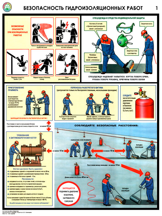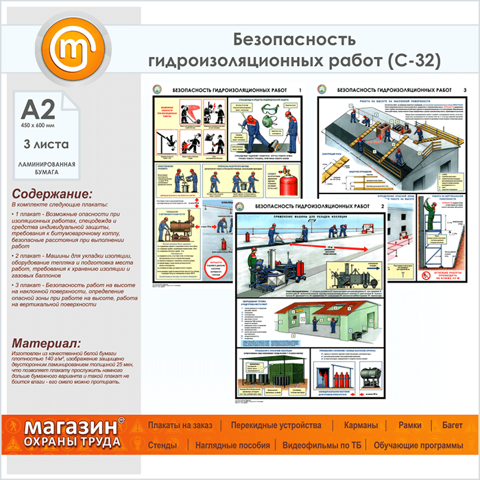 Плакаты «Безопасность гидроизоляционных работ» (С-32, ламинированная бумага, А2, 3 листа) в Ульяновске купить