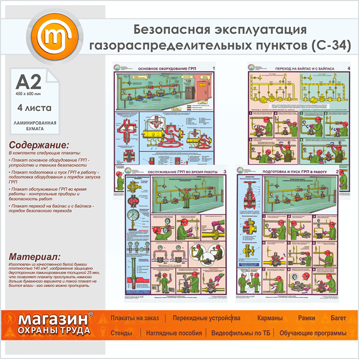 Плакаты «Безопасная эксплуатация газораспределительных пунктов» (С-34, ламинированная бумага, А2, 4 листа) в Ульяновске купить