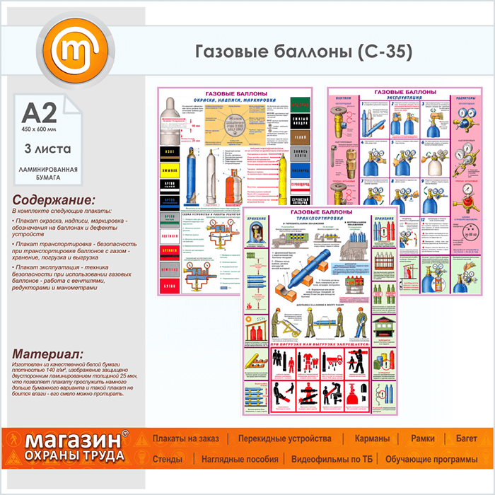 Плакаты «Газовые баллоны» (С-35, ламинированная бумага, А2, 3 листа) в Ульяновске купить