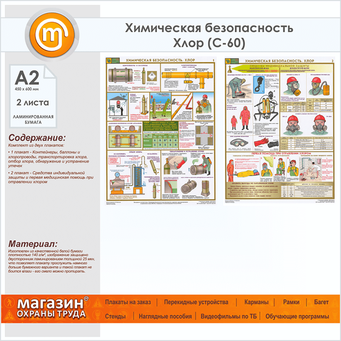 Плакаты «Химическая безопасность. Хлор» (С-60, ламинированная бумага, А2, 2 листа) в Ульяновске купить
