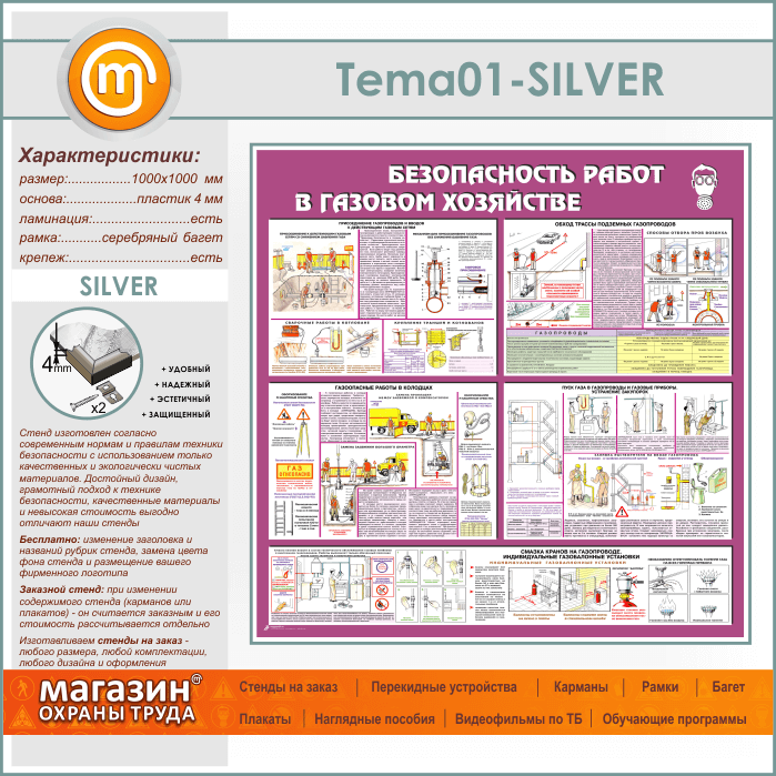Стенд «Безопасность работ в газовом хозяйстве» (TM-01-SILVER) в Ульяновске купить